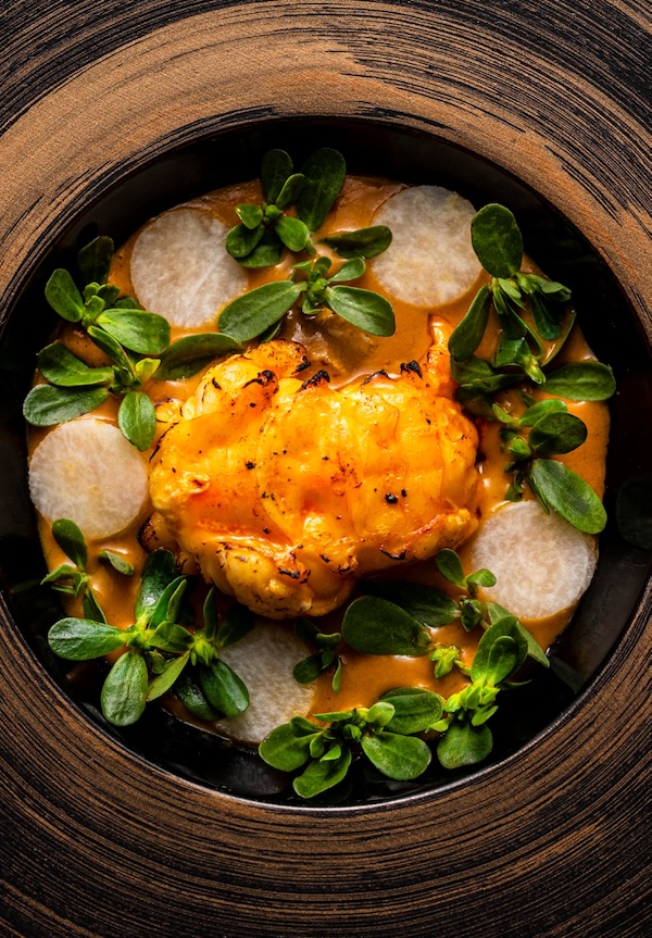 En la mesa aparecen tostadas finas, pescados trabajados con detalle, caldos más profundos y salsas basadas en vegetales que envuelven un róbalo impecable. Todo avanza con seguridad y sin exceso de adorno. Hay oficio, hay cabeza, hay una cocina que sabe cuándo ser delicada y cuándo apretar un poco más el sabor.