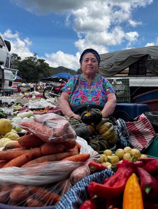 Si el viaje lo permite, hay que ir a algún mercado del altiplano. Ahí está la otra mitad de la historia. Pilas de zanahorias, calabazas, papas y chiles de todos los colores; frutas que perfuman los pasillos; mujeres con huipiles bordados atendiendo sus puestos con calma.