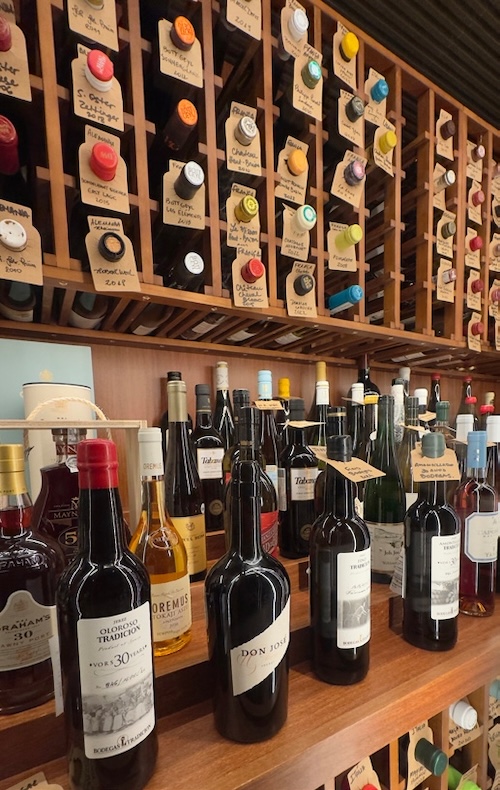 Llegamos a las 12 en punto y ya había fila. São Paulo no perdona ni los minutos ni el clima. Mientras abrían la puerta, hicimos tiempo como nos gusta: una vuelta por la cuadra y una parada express en una tienda de vinos. Mirar etiquetas siempre calma la ansiedad.