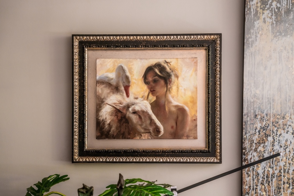En paredes, mesas y muebles abundan cuadros, esculturas, adornos y dibujos de Matías, que van narrando distintas etapas de su obra. Estas piezas dialogan con trabajos de otros artistas, generando una convivencia visual rica y estimulante. “Me gusta tener mis obras porque me recuerdan quién soy y todo lo que me queda por hacer. Sin embargo, también me gusta que estén mezcladas entre las de otros muchos artistas a los que admiro y que conversen entre sí”, dice el artista visual.