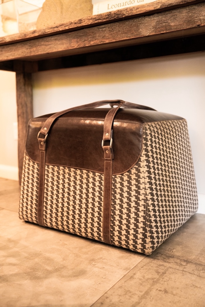 Un puff cartera destaca en el comedor.